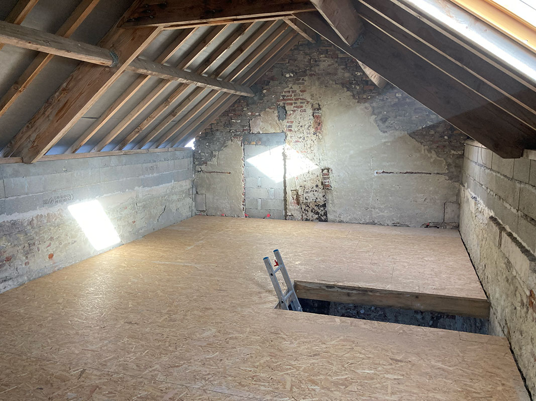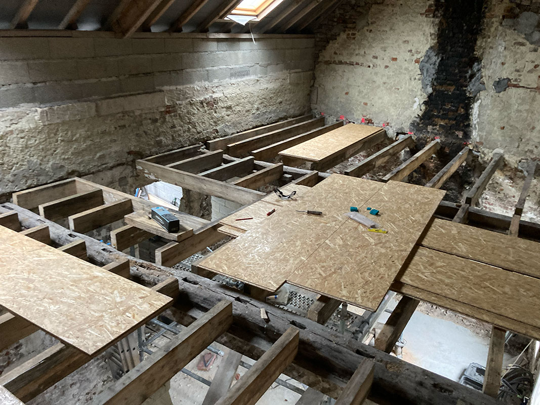 Lacroix-St-Ouen (60) Création plancher R+1, pose de plaque OSB
